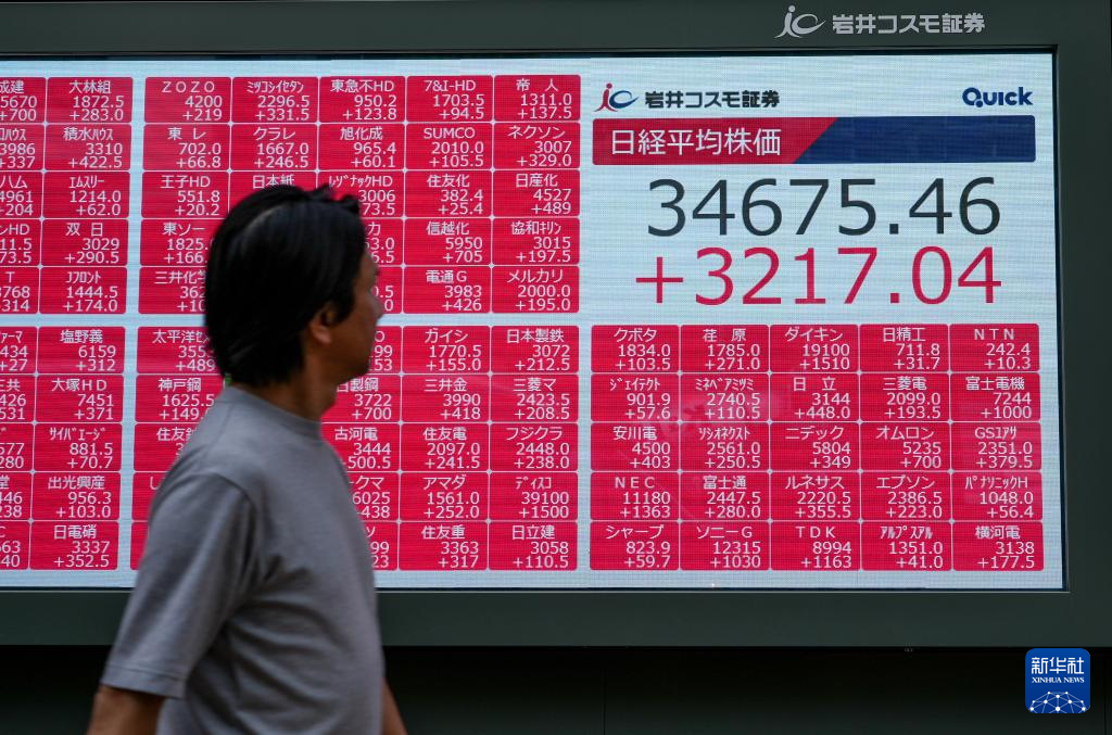 至收盘时,日经股指上涨3217.04点,上涨点数创历史纪录,收于34675.46点;东证股指上涨207.06点,收于2434.21点。