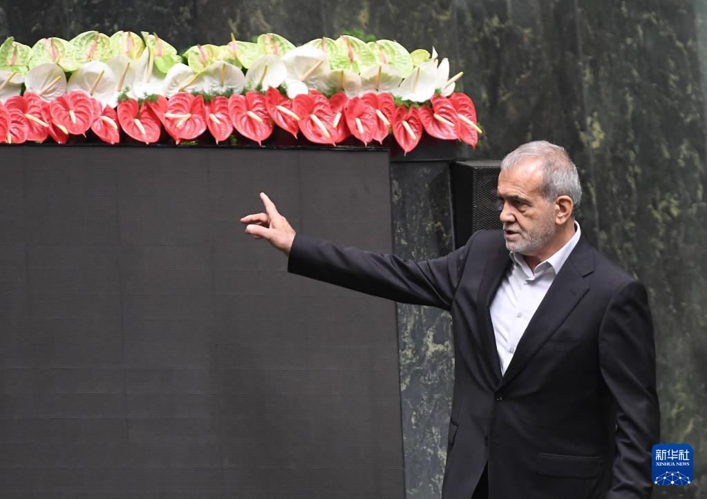 佩泽希齐扬宣誓就任伊朗总统 7月30日,佩泽希齐扬在伊朗德黑兰的伊朗议会发表总统就职演说后离开。 伊朗当选总统佩泽希齐扬30日下午在伊朗议会正式宣誓就职。 新华社记者 沙达提 摄
