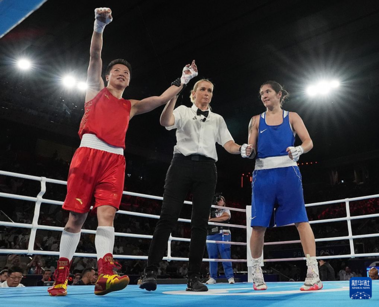 当日,在巴黎奥运会拳击项目女子50公斤级半决赛中,中国选手吴愉战胜哈萨克斯坦选手克扎伊拜,晋级金牌赛。