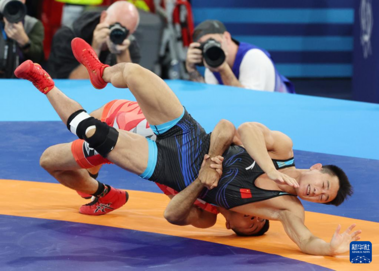 当日,在巴黎奥运会男子古典式摔跤60公斤级决赛中,中国选手曹利国不敌日本选手文田健一郎,获得银牌。
