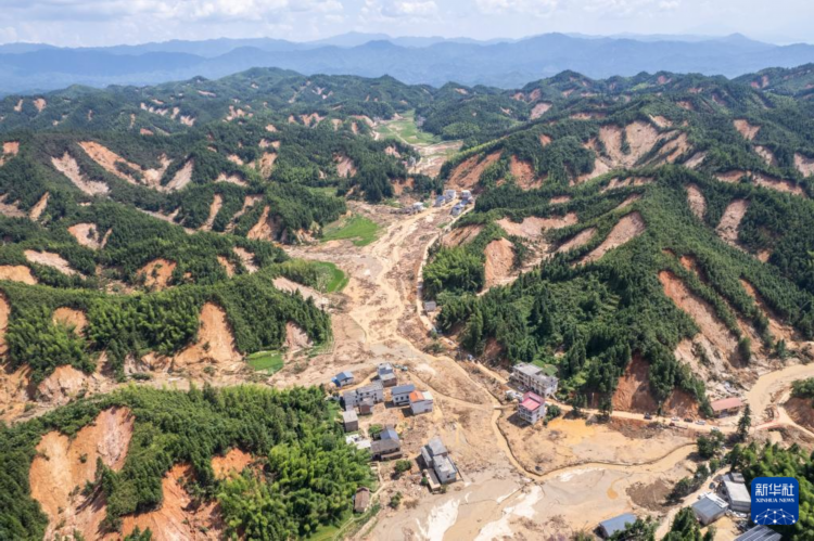 这是8月7日在资兴市州门司镇燕窝村拍摄的受灾现场(无人机照片)。