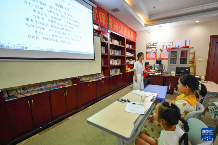 暑假期间,为缓解双职工家庭、新就业形态劳动者等群体子女的托管难题,湖南省长沙市望城区月亮岛街道黄都港社区开设了“爱心课堂”,为孩子们提供朗诵、体育、书法等课程,组织读书分享会、暑期科普实践等活动,丰富孩子们的假期生活,缓解家长暑期“带娃难”。