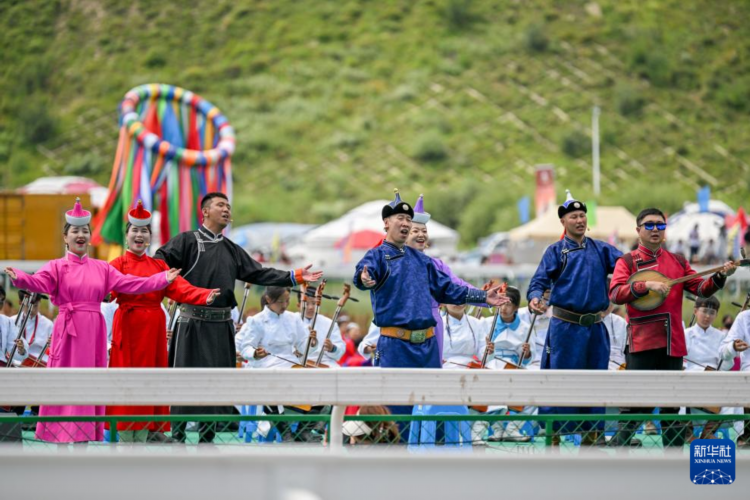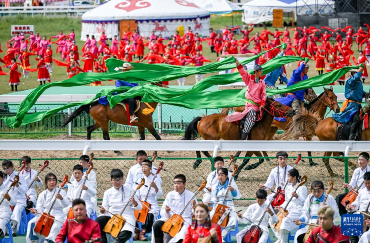 8月8日拍摄的2024兴安盟那达慕开幕式上的文艺表演。