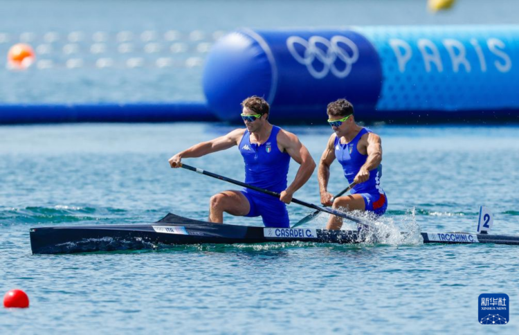 8月8日,意大利选手卡萨代伊(左)、塔基尼在比赛中。最终,他们获得亚军。新华社记者 沈伯韩 摄