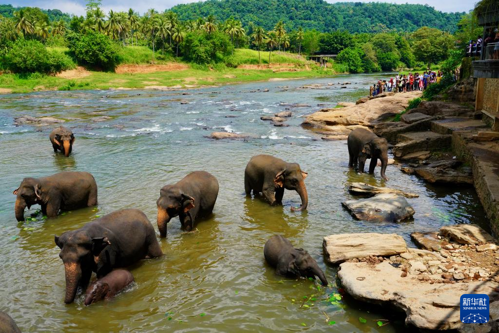这是8月11日在斯里兰卡平纳维拉大象孤儿院拍摄的象群。 8月12日是世界大象日。斯里兰卡的平纳维拉大象孤儿院建于1975年,专门收养在丛林中失去父母的幼象,或者患有伤疾的大象。 新华社记者 伍岳 摄