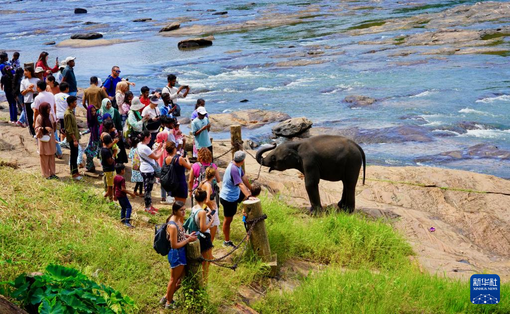 8月11日,游客在斯里兰卡平纳维拉大象孤儿院同大象互动。 8月12日是世界大象日。斯里兰卡的平纳维拉大象孤儿院建于1975年,专门收养在丛林中失去父母的幼象,或者患有伤疾的大象。 新华社记者 伍岳 摄
