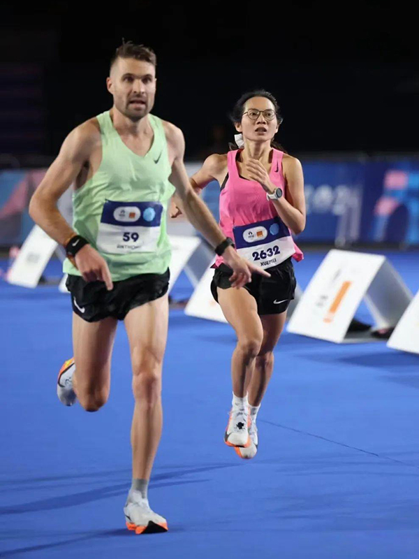 2023年,在有“国马”之称的北京马拉松赛道上,黄雪梅跑出了2小时32分16秒的惊人成绩,一跃成为业余女选手中的“一姐”。(记者 肖榕)