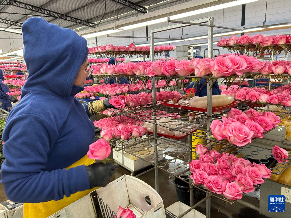 8月7日,在厄瓜多尔卡扬贝市埃米亚纳公司,工人对采摘后的玫瑰进行分类。