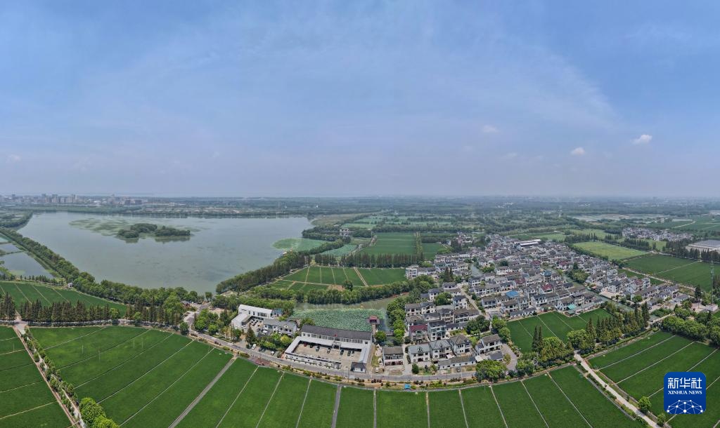 空中俯瞰位于淀山湖水域的大莲湖及周边的莲湖村(8月8日摄,无人机照片)。