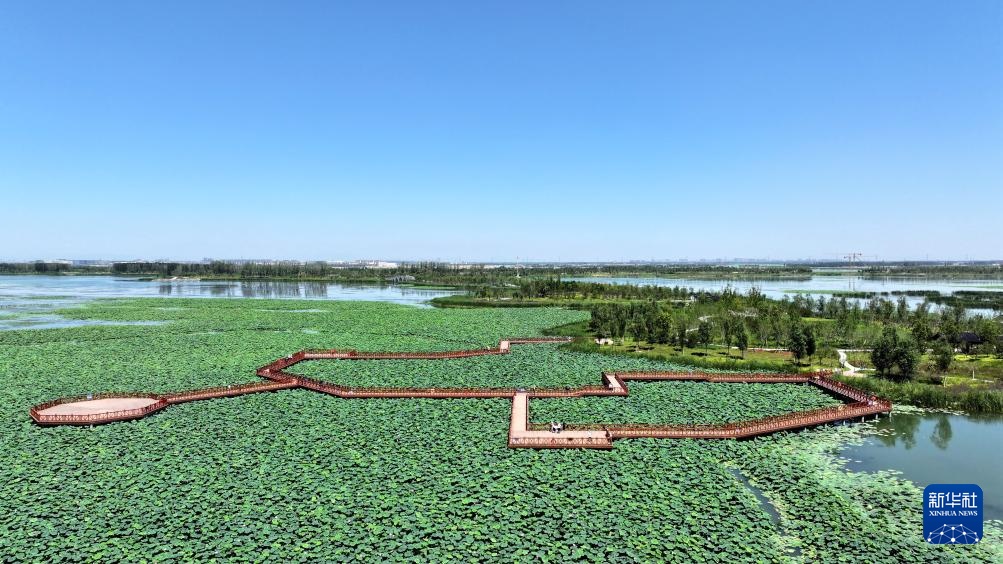 8月13日拍摄的雄安新区白洋淀唐河入淀口湿地(无人机照片)。
