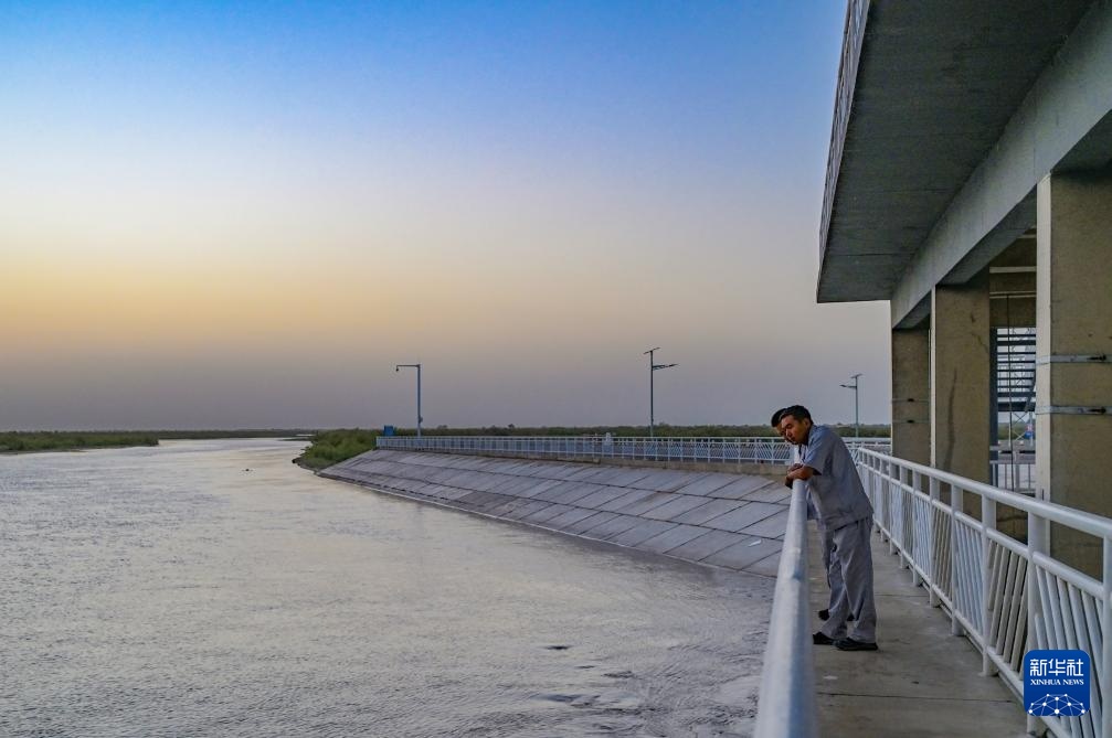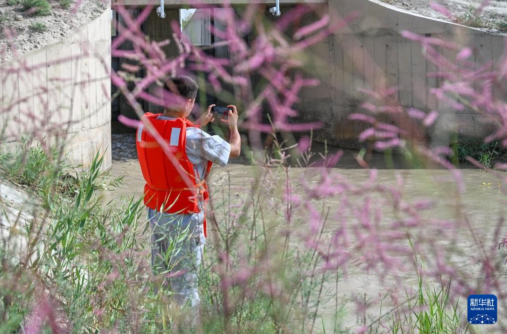 在新疆塔里木河干流吉哥德生态闸,才登巴在巡查(8月13日摄)。