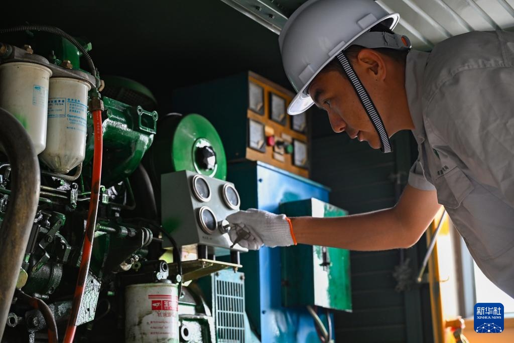 在新疆塔里木河干流乌斯满引水枢纽,才登巴在检查试运行备用电源(8月13日摄)。