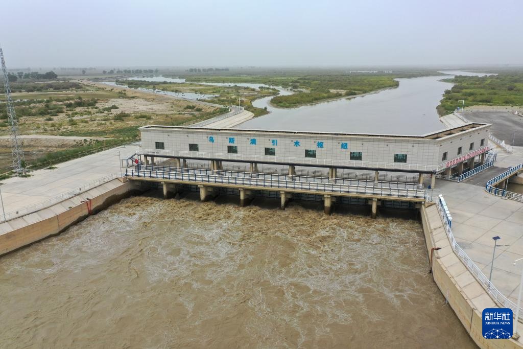 这是8月13日拍摄的新疆塔里木河流域干流乌斯满引水枢纽(无人机照片)。