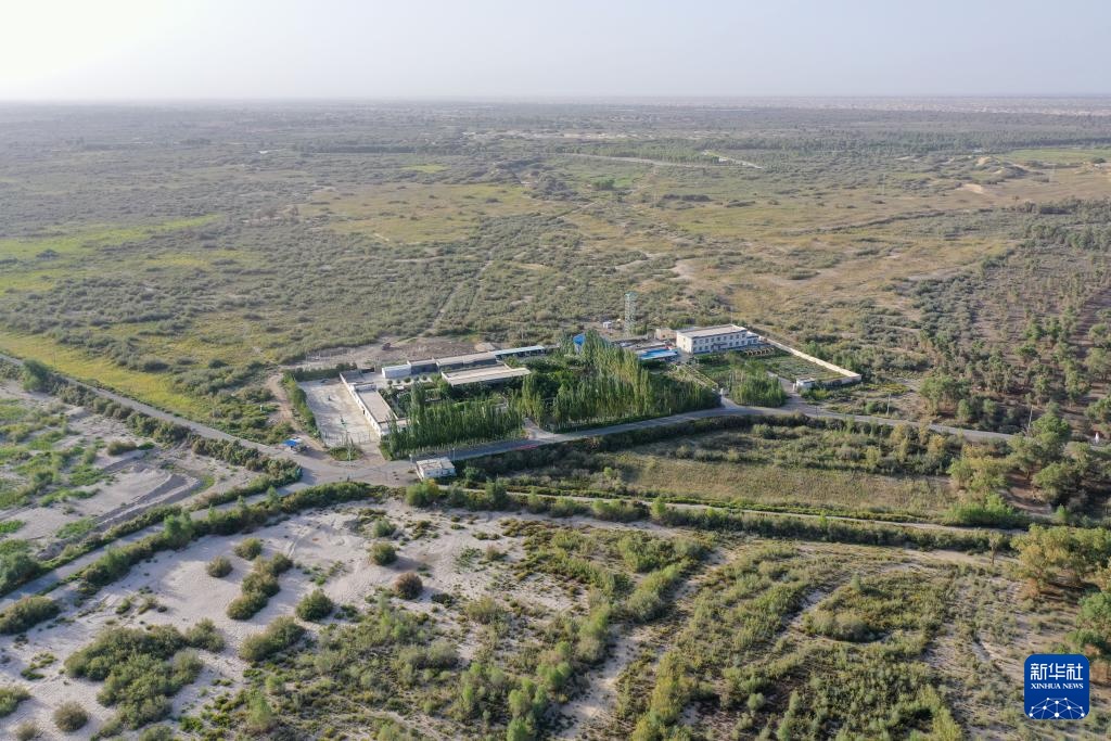 这是8月13日拍摄的新疆塔里木河流域干流管理局乌斯满管理站(无人机照片)。