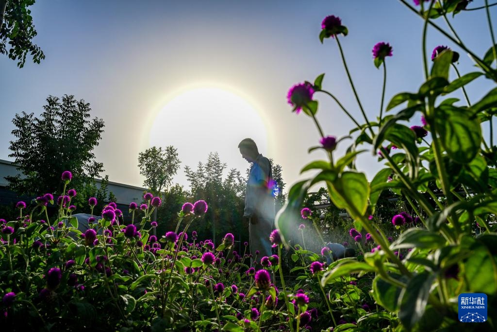 在新疆塔里木河干流乌斯满管理站,才登巴在菜园查看蔬菜长势(8月13日摄)。管理站因距离周围乡镇较远,工作人员在闲暇时间利用站内空闲土地种植蔬果自给自足。