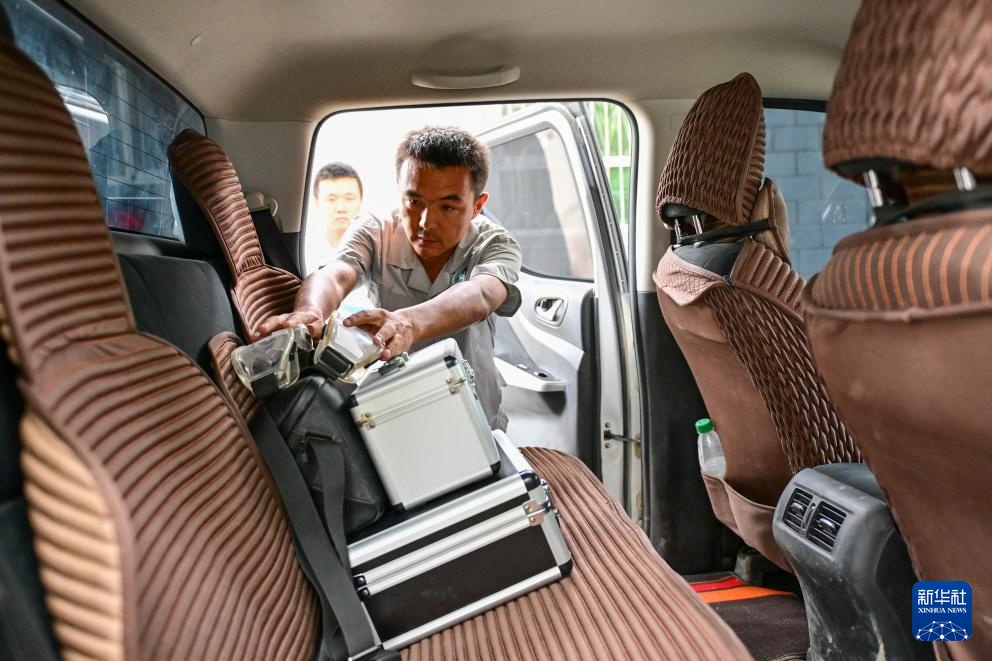 在新疆塔里木河流域干流管理局乌斯满管理站,才登巴将巡查设备装车(8月13日摄)。