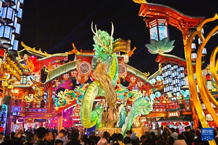 人们在青岛城阳区明月·山海间景区游玩(2月10日摄)。