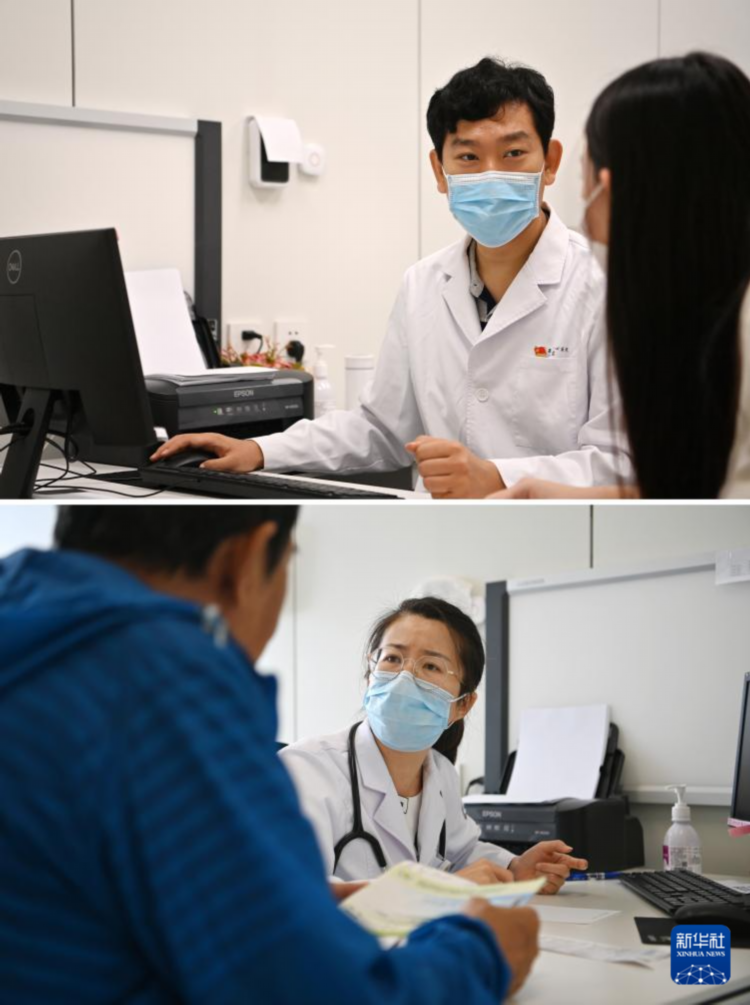 拼版照片,上图为:8月18日,宋立君在天津市第一中心医院(水西院区)坐诊;下图为:8月16日,王丽在天津市第一中心医院(水西院区)坐诊。