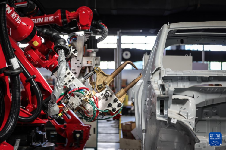 这是6月3日在辽宁沈阳拍摄的沈阳新松机器人自动化股份有限公司生产的点焊机器人。近年来,沈阳新松机器人自动化股份有限公司先后承担了“面向智能工厂的工业机器人关键技术及应用”“高性能真空机械手及传输平台研制”两项辽宁省创新联合体科技重大专项,实现在国产新能源汽车焊装线应用的重大突破,真空机械手实现在国产半导体装备关键环节的批量应用。
