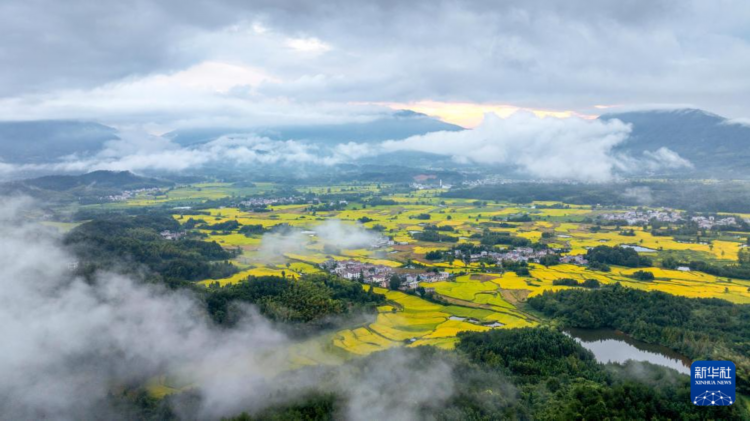 安徽省宣城市旌德县兴隆镇梯田,有着万亩“云上梯田”之称。立秋过后,连片种植的万亩水稻陆续成熟,丰收在望。
