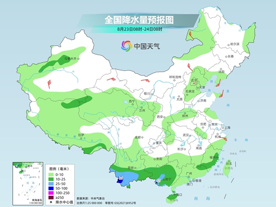 今天(8月21日),我国降雨总体呈现减弱减少的趋势,不过在东北、江南东部、华南等地仍需注意防范较强降雨可能带来的不利影响。明天起,中东部降雨趋于结束,黄淮至江南等地高温天气迅速发展,四川盆地为热力中心,高温持续时间长、强度大,公众需注意防暑。
