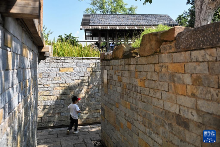 8月21日,小朋友在卧龙古渔村游玩。