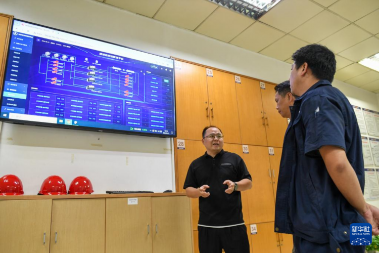 8月21日,在深圳国贸大厦,中建三局工作人员向物业工作人员介绍数字运维管理平台中的碳排放管理模块。