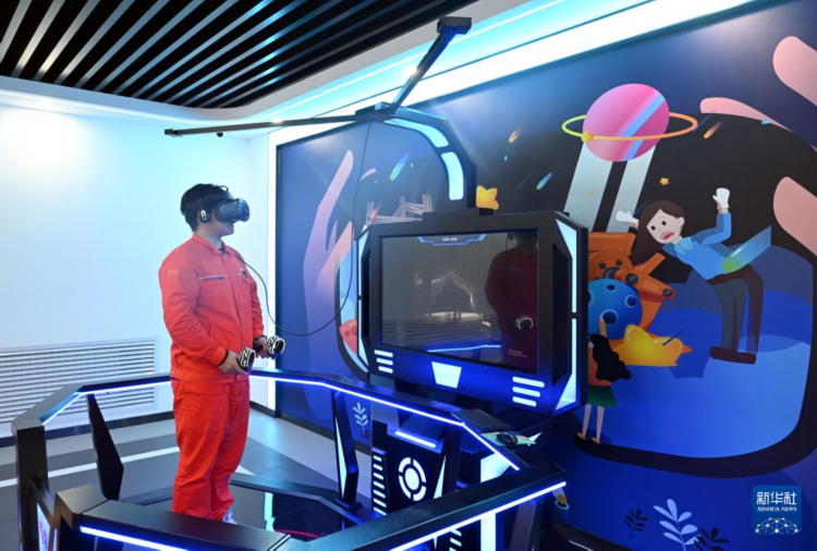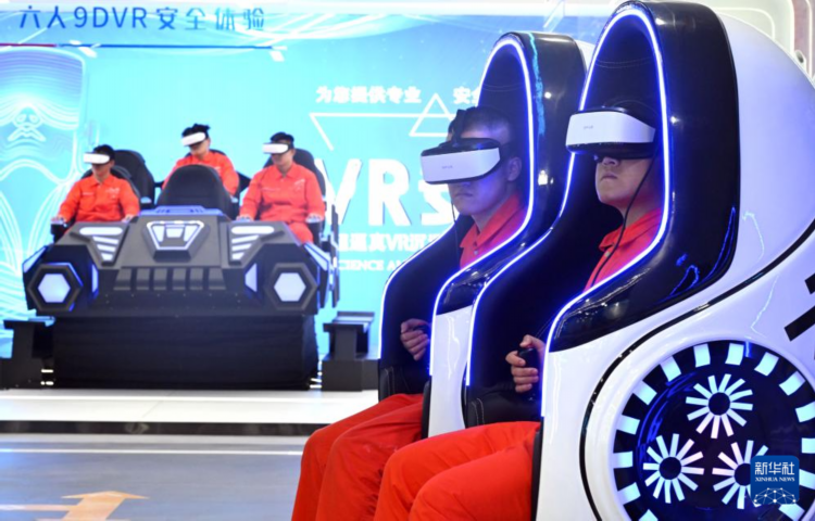 8月21日,在中国能建易普力股份有限公司位于新疆准东经济技术开发区的智能化安全体验培训中心内,员工通过VR技术接受培训。