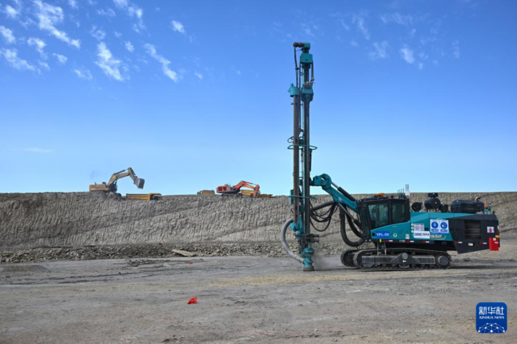8月21日,智能无人钻机在新疆准东宜化五彩湾一号露天煤矿矿区进行打孔作业。