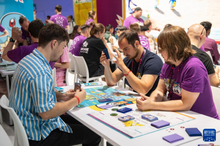 8月21日,人们在德国科隆举办的科隆国际游戏展上试玩卡牌类游戏。