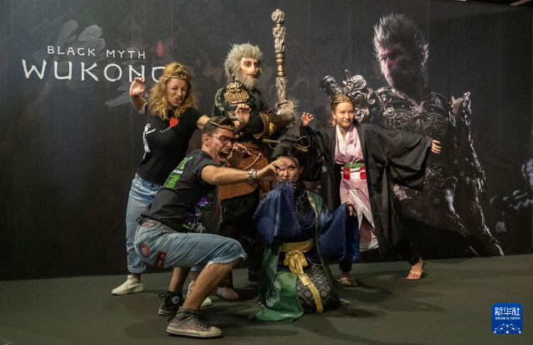 8月22日,人们在德国2024年科隆国际游戏展《黑神话:悟空》拍照区拍照。