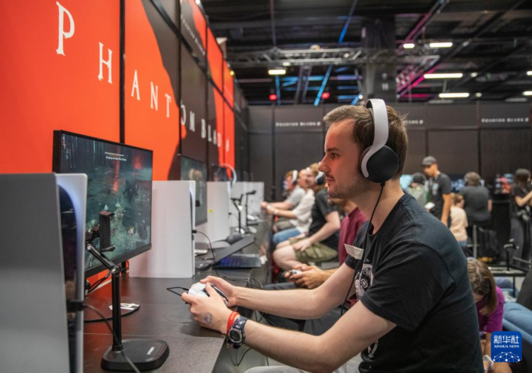 8月21日,一名男子在2024年科隆国际游戏展灵游坊展台试玩游戏《影之刃零》。