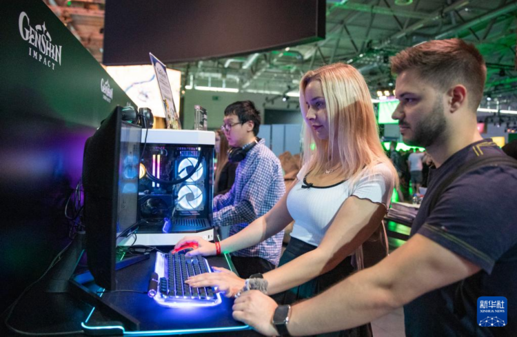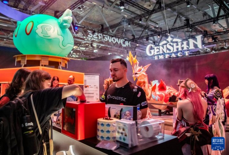 8月22日,人们在2024年科隆国际游戏展米哈游展台试玩游戏《原神》。