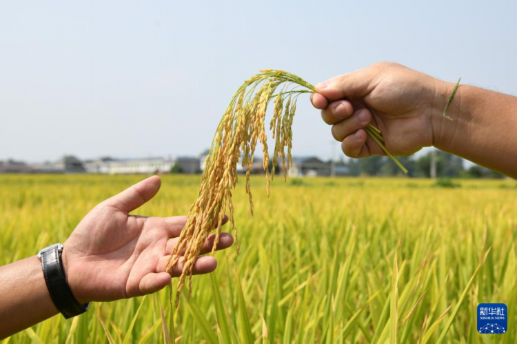 8月26日,在洪雅县“天府粮仓”止戈安宁万亩核心示范区,四川农业科学院作物研究所水稻专家展示示范区内种植的水稻。