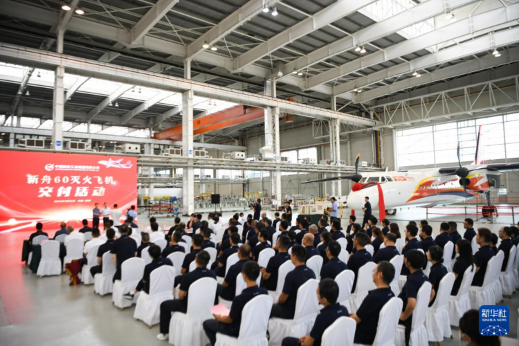 这是“新舟”60灭火飞机交付活动现场(8月26日摄)。