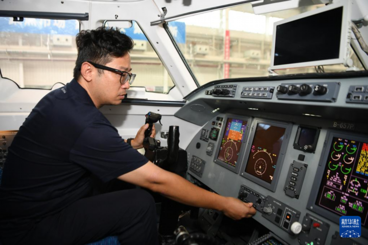 8月26日,工作人员在一架正式交付的“新舟”60灭火飞机上进行设备演示。