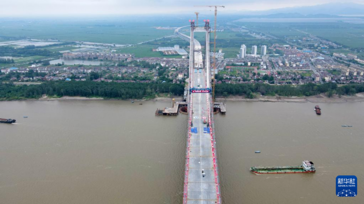 8月27日拍摄的G3(京台高速)铜陵长江公铁大桥合龙现场(无人机照片)。新华社记者 刘军喜 摄