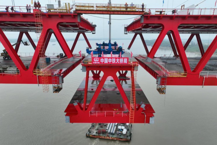 图为G3铜陵长江公铁大桥施工现场。(中铁大桥局供图)