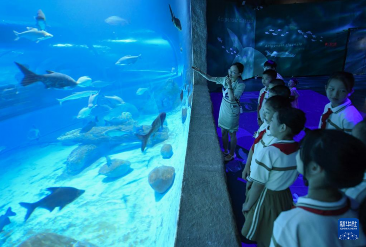 8月27日,在浙东淡水鱼馆,讲解员为前来研学的孩子介绍鱼类习性。