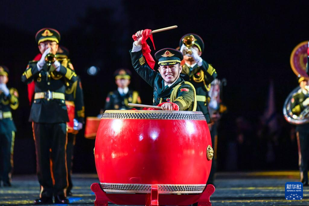 中国人民解放军仪仗司礼大队军乐团赴俄罗斯参加第16届“斯帕斯钟楼”国际军乐节 8月23日,在俄罗斯首都莫斯科,中国人民解放军仪仗司礼大队军乐团在军乐节上表演。 中俄建交75周年之际,应俄罗斯“斯帕斯钟楼”国际军乐节组委会邀请,中国人民解放军仪仗司礼大队军乐团于8月23日至9月1日,参加第16届“斯帕斯钟楼”国际军乐节。23日晚,军乐团在莫斯科红场举行开幕式首场演出。 新华社记者 曹阳 摄