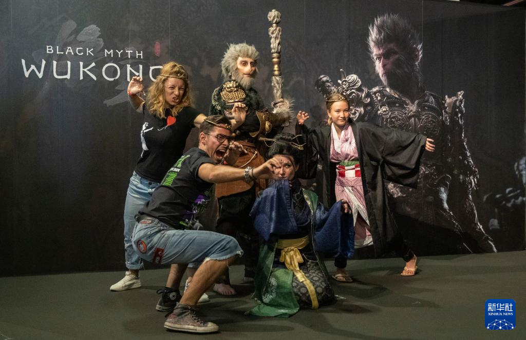 记者手记|在科隆国际游戏展感受“中国游戏热” 8月22日,人们在德国2024年科隆国际游戏展《黑神话:悟空》拍照区拍照。 新华社记者 张帆 摄