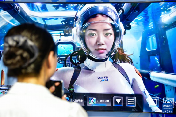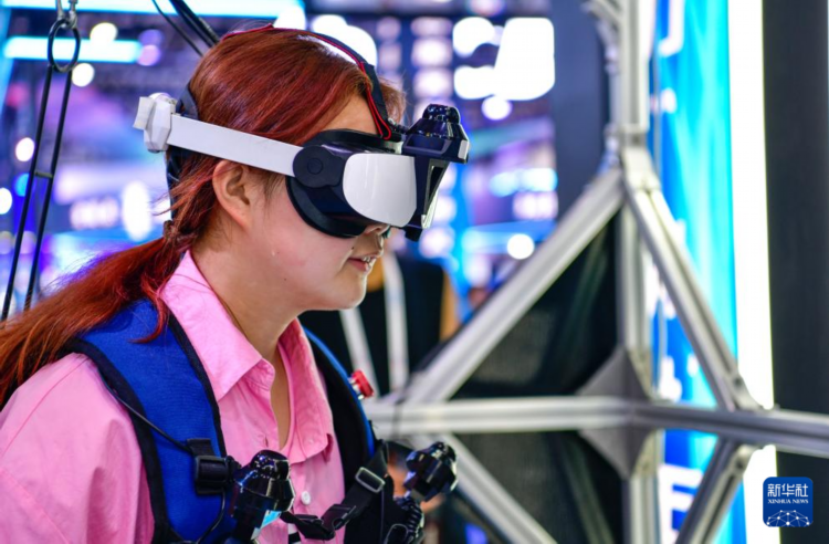 8月28日,参会人员在数博会上体验AI+元宇宙空间。