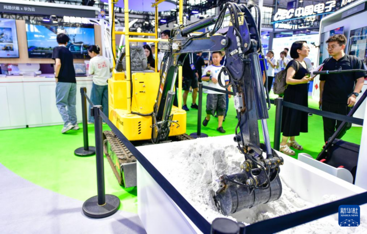 8月28日拍摄的在数博会上展出的一款智能机械设备。