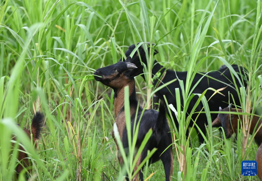 8月21日,在福建省永泰县清凉镇北斗村,以菌草为饲料养殖的富泉羊在“珍农菌草富泉羊循环产业示范基地”里吃菌草。