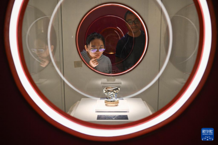 8月31日,观众在海南省博物馆观看“物华天宝 黎海琼珍——故宫博物院藏海南文物特展”。