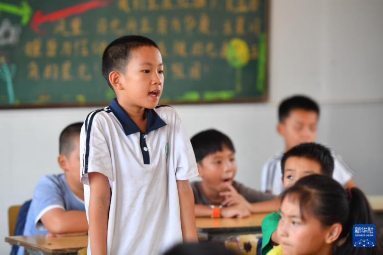 9月2日,在湖南省华容县团洲学校,四年级学生在主题班会上。