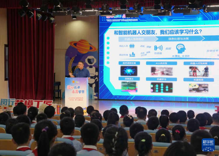 9月2日,闵行工匠张建政在“开学第一课”上讲述机器人的研发技术和应用场景。