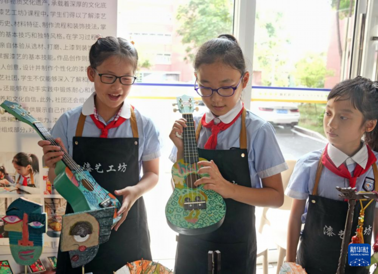 9月2日,闵行区实验小学(畹町校区)的学生们展示手工制作社团活动的成果。