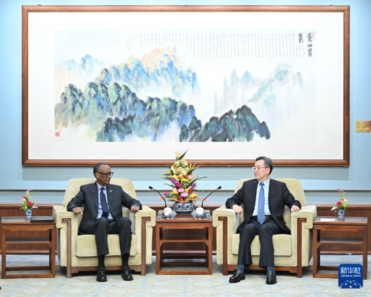 9月3日,中共中央政治局常委、国务院副总理丁薛祥在北京会见来华出席中非合作论坛北京峰会的卢旺达总统卡加梅。新华社记者 李响 摄