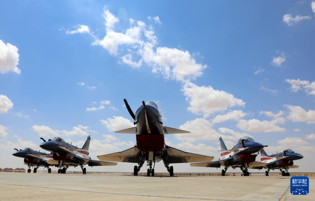 中国空军亮相3日在埃及阿拉曼开幕的首届埃及航展,运-20进行飞行展示,八一飞行表演队歼-10表演机静态展示,充分展现自信开放的风采。